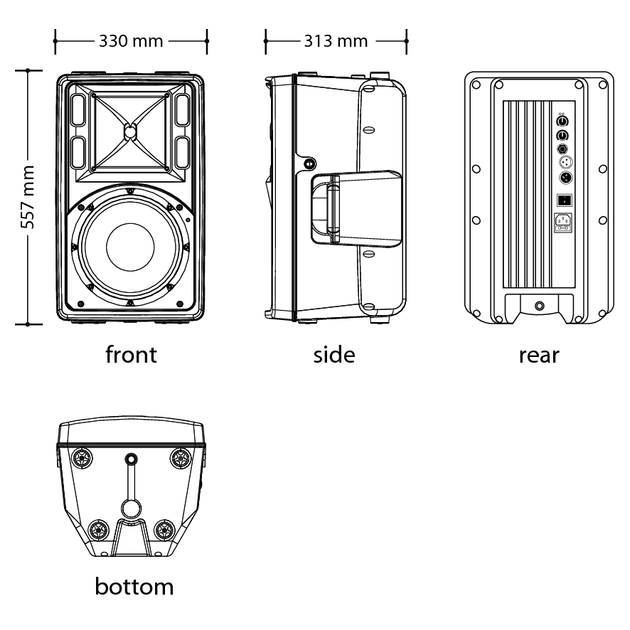 Active loudspeaker, AB-class bi-amp, 2-way 250W+50W, 122dB SPL