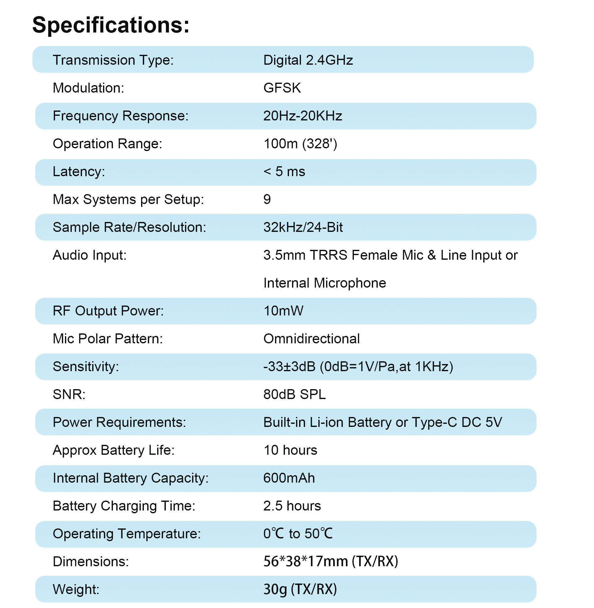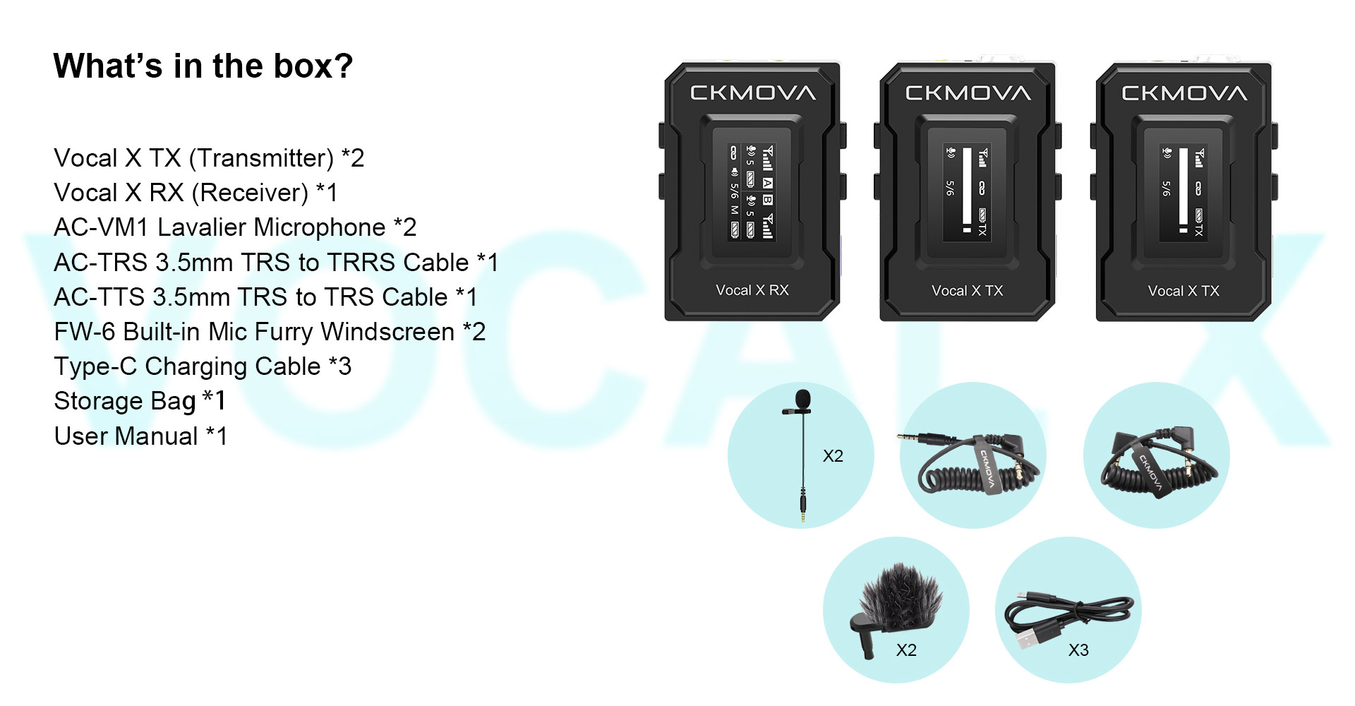 CKMOVA VOCAL X V1 Ultra compact 2,4Ghz Dual Channel Ασύρματο μικρόφωνο