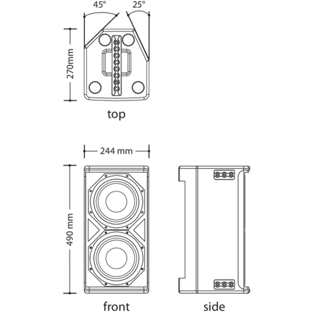 - 2x8'' woofers with 2'' voice coil, one of which having coaxial design and equipped with 1'' HF compression driver, with titanium diaphragm and 1,4'' voice coil