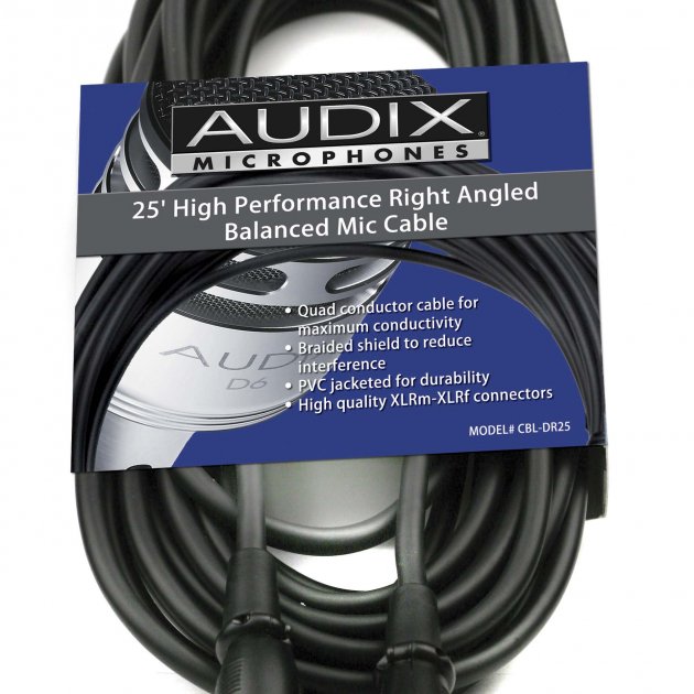 AUDIX CBLDR25 angle XLR mic cable. Quad conductor with braided shield 7,5m